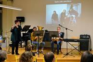 Aufgrund der überaus positiven Rückmeldungen der zahlreich erschienenen Zuschauer freuten sich die Schülerinnen und Schüler, ihr ca. 60-minütiges Programm erneut am Tag der offenen Tür den Besuchern des Hauses vorzuführen. Die Jahrgangsstufe 8 beteilgte sich hierbei mit einer Bodypercussion-Performance. Ein besonderes Highlight dieses Beitrags waren die eigens für diese Darbietung hergestellten Bühnenkostüme aus Zeitungspapier.