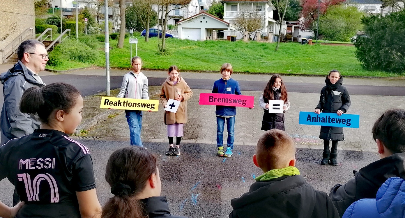 Am 04. und 05. April hatten die Schülerinnen und Schüler der 5. Klassen eine besondere Gelegenheit am Verkehrserziehungsprogamm „Achtung Auto“ des ADACs teilzunehmen. Der ADAC-Moderator Herr Häring führte dabei durch ein sehr anschaulich und altersgerecht gestaltetes Programm. Die Schülerinnen und Schüler nahmen dabei verschiedene Rollen ein, wie beispielsweise die des Fußgängers oder auch die des Mitfahrers im Auto, um die wichtigen Verhaltensregeln im Straßenverkehr zu wiederholen. Auf spielerische Art und Weise und anhand von praktischen Übungen erlernten die Schülerinnen und Schüler, was die Formel „Reaktionsweg + Anhalteweg = Bremsweg“ in der Realität bedeutet. Besonders beeindruckend war das direkte Erlebnis einer Vollbremsung bei 30 km/h mit dem erfahren ADAC-Moderator. Hier wurde auch nochmals die Wichtigkeit des Anschnallgurtes und dessen Bedeutung aufgezeigt.