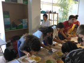 Sechs EFG-Schülerinnen und -Schüler der 9. Klasse trafen smit ihren dänischen, holländischen und spanischen Partnern in der spanischen Kleinstadt Onda, ca. 50 Kilometer nördlich von Valencia, um dort ihre gemeinsame Arbeit am Erasmus+ Projekt „Märchen- und sagenhaftes Europa" fortzusetzen. Die Schüler beschäftigten sich mit spanischen Sagen und Legenden, die vor allem für die Region Valencia von Bedeutung sind. Sie setzten die Geschichten zeichnerisch um und malten sie schließlich auf Fliesen. Fliesen deshalb, weil Fliesen und Keramik in Onda eine große Tradition haben und heute ein bedeutender Wirtschaftsfaktor sind. Vielfältige Aktivitäten, z.B. eine Exkursion nach Valencia und eine Bootfahrt auf einem unterirdischen Fluss, gaben den Gästen Gelegenheit, Landschaft, Kultur und Lebensweise der Gastgeber kennenzulernen. Viel Freude machte den Teilnehmern außerdem das zwanglose Beisammensein mit Jugendlichen aus anderen Ländern, das muntere Gewirr verschiedener Sprachen, die problemlose Kommunikation auf Englisch und die große Gastfreundschaft der Gastgeber.