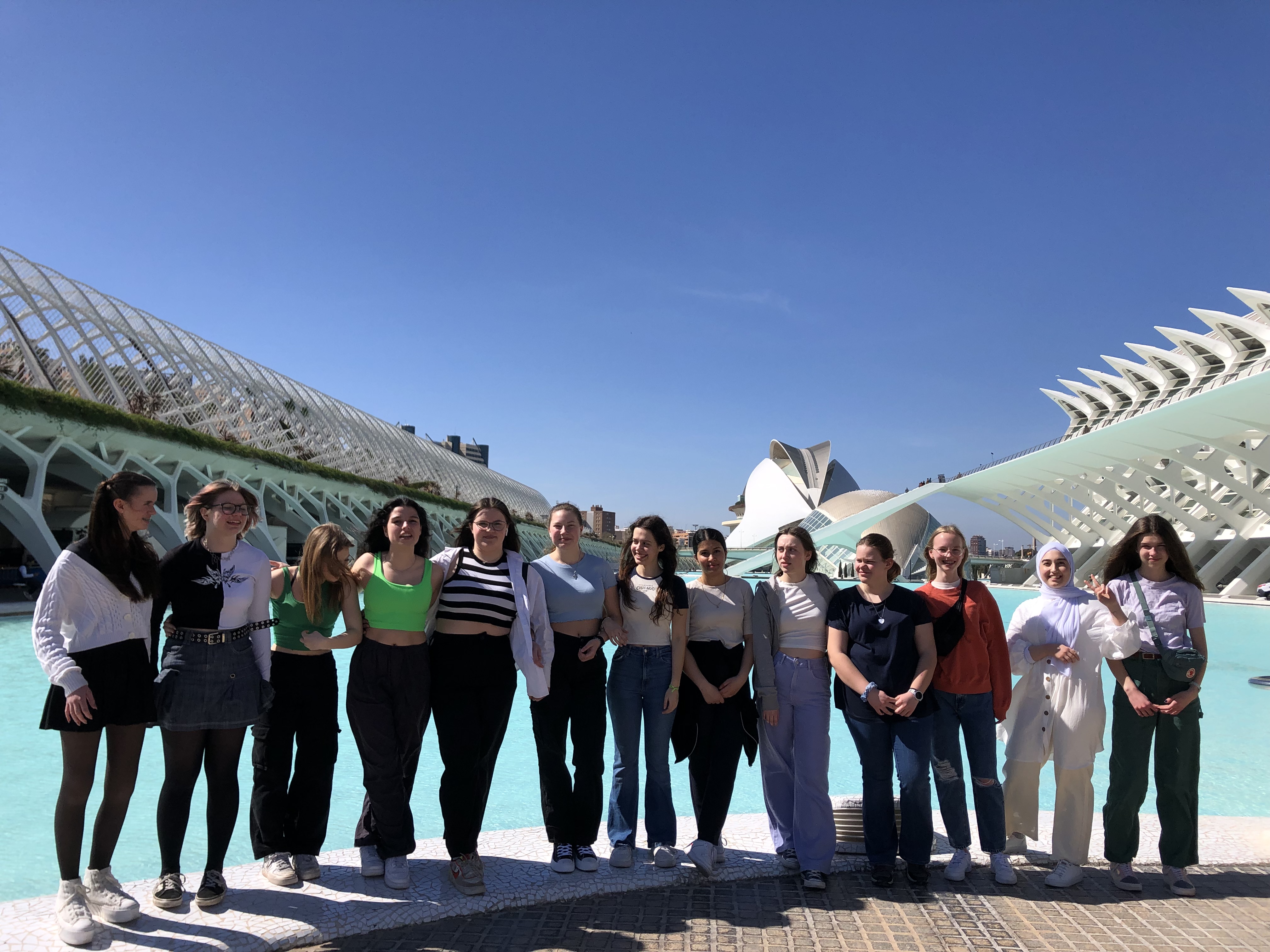 Im Rahmen des zweiten Spanienaustauschs zwischen dem EFG und dem Colegio Madre Maria Rosa Molas in Onda/Spanien besuchten 13 Schülerinnen aus Bad Sobernheim vom 26. März bis zum 1. April 2023 ihre Austauschpartner und -partnerinnen. Der Austausch wird vom Programm ERASMUS+ finanziert. Ein buntes Programm erwartete die Sobernheimerinnen: Neben der Partnerschule lernten die Schülerinnen das valenzianische Ballspiel Pilota kennen, erkundeten die Kleinstadt Onda, fertigten einen Schriftzug aus Ton im Keramikmuseum in Onda an, probierten die lokalen Spezialitäten Horchata und Fartons und besuchten als Höhepunkt die Großstadt Valencia mit ihren zahlreichen kulturellen Highlights. Eine besondere Erfahrung für die deutschen Schülerinnen war der Aufenthalt bei spanischen Gastfamilien, wo sie die Lebensweise ihrer Austauschpartner kennenlernten und Spanisch hörten in jeder Lebenslage. Ein tolles Erlebnis! Ende Juni erwarten wir den Gegenbesuch der Gäste aus Onda in Bad Sobernheim. Wir freuen uns!